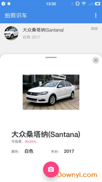 应用使用简单,点击主界面下方按钮,拍照或选择汽车图片,即可识别出车辆信息。