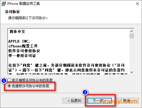 1、在当易网下载iphone配置实用工具windows版,并解压压缩包,双击文件“iphoneconfigutilitysetup.exe”,进入安装界面直接点击“下一步”: