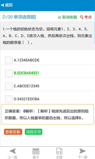 为考生提供便利的计算机等级考试专用软件。该软件功能完善,集题目训练、解析查看、错题练习、题目搜索等功能于一体,并能及时获取计算机等级考试相关资讯。软件中包含全国计算机等级考试一至四级的全部科目,能满足广大考生的需求。