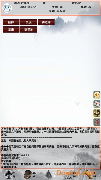 4、整改门府界面、角色界面、灵戒界面、应卯、铸灵池界面、卷轴界面、灵派界面ui,让灵者体验更佳。
