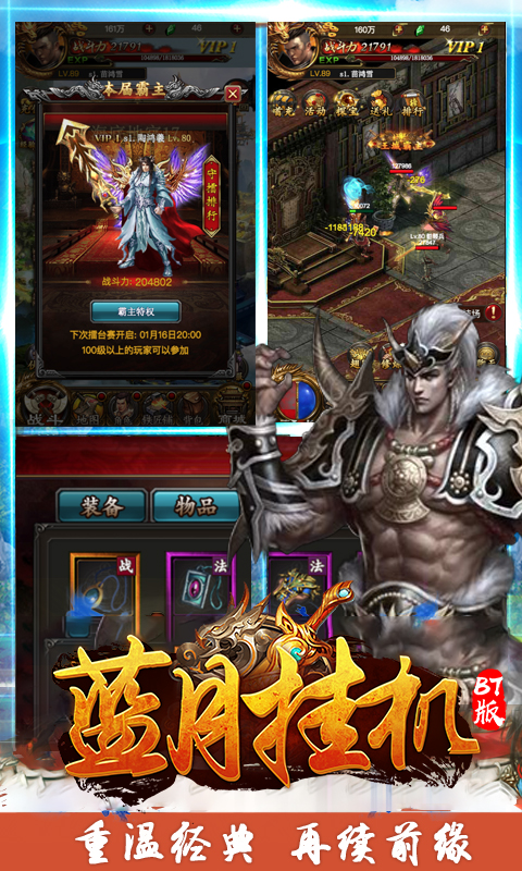 蓝月挂机bt版是一款超好玩的传奇题材手游,让你重温那些年兄弟一起杀怪的享受!挂机玩法轻松升级,神装爆率惊人,七天就能满级,获得超高战力!感兴趣的小伙伴快来体验吧!