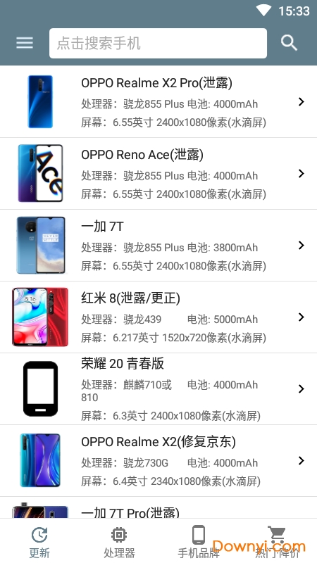 5、增加geekbench5分数来源。增加手机品牌导航标签页。改善图片显示。搜索手机增加筛选各种手机特点。处理器搜索列表点击右下角图标可切换显示曼哈顿3.1,geekbench5,安兔兔v8分数。更新有问题请反馈。