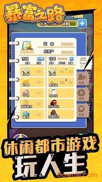 暴富之路是一个模拟白手起家,寻找一夜暴富机会的模拟小游戏,这里提供暴富之路言网版本下载,你可以知道努力拼搏的痛苦,可以知道成功人士的枯燥,游戏玩法自由,数值随机,非常轻松。
