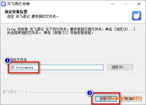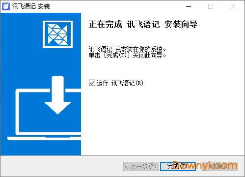 1、在dangyi下载讯飞语记电脑版,得到文件“xunfeiyuji_v2.4.2_downyi.com.exe”并双击进入安装界面: