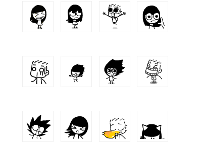 一个黑色长发,大眼眼的小姑娘,表情有V,瞪眼,伸开双臂跑来,后脸,摇头,渐渐飘走,在风中,呵呵傻笑,大风吹得头直晃,左右看,吃东西,扮鬼,礼物,吐,色,砍断右臂,伸手八字手,落大泪,嘘,疑问,左右转眼珠,跳着跑,打碎自己的双眼,把小男孩踹起,今天星期五,亲小女孩,对亲,了不,闭眼,恩节天下,还有很多小一点的表情,都很可爱。