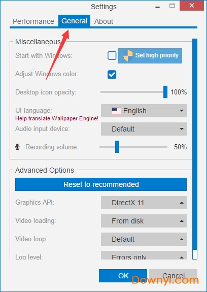 2、将设置窗口切换到“general”标签页下。