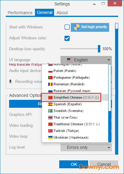 3、然后将“ui language”后的语言通过下拉框修改为简体中文。