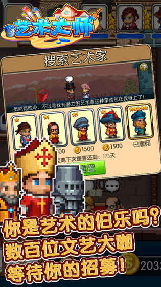 艺术大师游戏官网中文安卓版是款像素风格的艺术类游戏,游戏中玩家可以展览各式各样的文化艺人来进行创造,创作的方面涵盖各个领域,不同的人物角色有着不同的属性,他们的作品也有可能成为巨作。