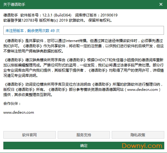 拥有大容量的词库。包括了德汉-汉德词典、德语近义词词典、德语专业词典以及德德、德英等大量词库