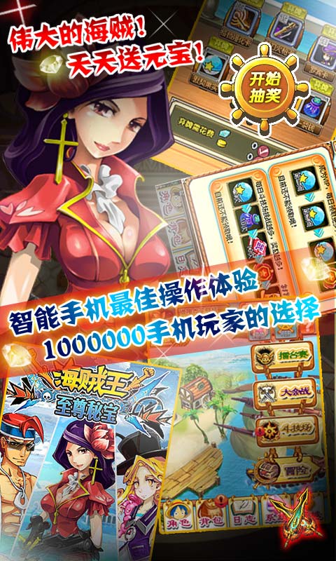 称霸四海,去夺取传说中的宝藏!当然,想获得传说中的宝藏需要的不只只是实力,还需要玩家的运气!精英云集的比武大会战,这里集结了来自四海的精英海贼,也是检验自己实力的最佳场所,努力成为最强的海贼吧!