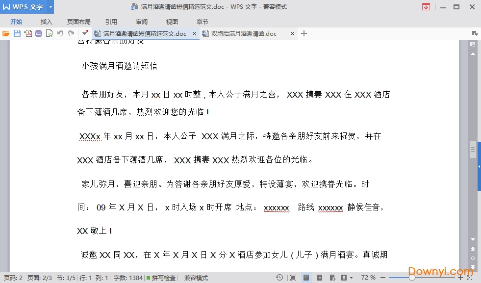 满月酒邀请函电子版免费下载 19KB