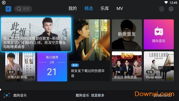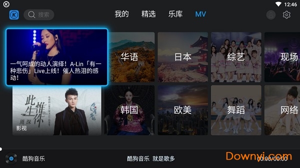 酷狗音乐电视最新版专为电视盒子端打造的,让我们在电视上也可以听各种好听的歌曲,并且酷狗中的歌曲资源特别的丰富,里面还有很多的mv可供你观看,还可以同步手机端,使用特别的方便。