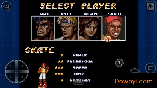 2、移植于经典的街机平台,本作中拥有四个可玩角色,每个角色都有不同的能力;