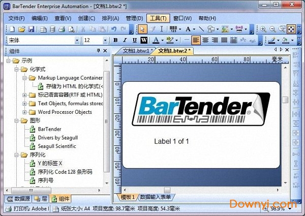 bartender9.4是美国海鸥科技研发推出的功能强大、非常专业的条码打印软件。使用它我们可以进行复杂的标签设计和条形码设计,打印完成的介质清晰,并且支持的标签类型包括epc class 1 、gen2 、iso 18000-6b 、iso 15693 、tag-it 、i-code 、tagsys 、my-d 、picotag,是目前行业中使用最多、打印最快、最容易设计的专业、高质量标签的条码打印工具软件。