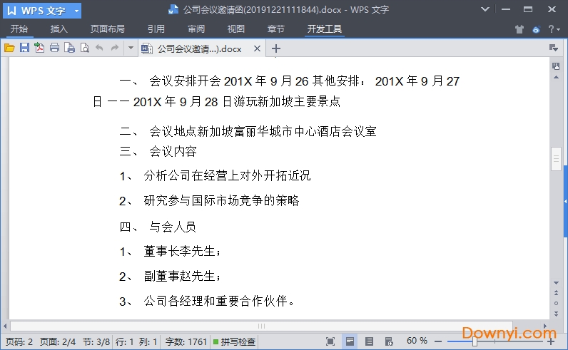 会议邀请函格式:
