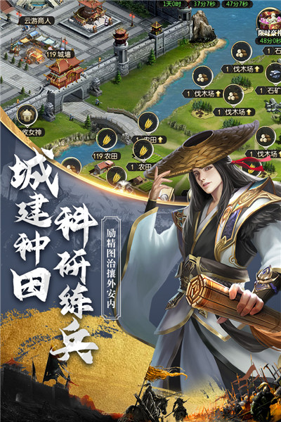 经典的经营玩法,建设自己的城池,收集武将,征战四方,亦或是休养生息,备战待敌。通过不断的游玩获取大量的奖励,升级自己的城池,抵御其他玩家的掠夺。收集海量武将,轻松的击溃敌人,获取大量奖励。沉浸式的游玩体验,轻松的击溃敌人,给玩家带来不一样的游玩体验。