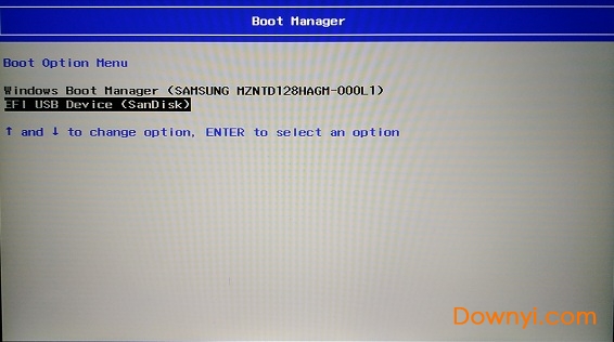 进入boot manager后,选择 efi usb 作为启动项,回车