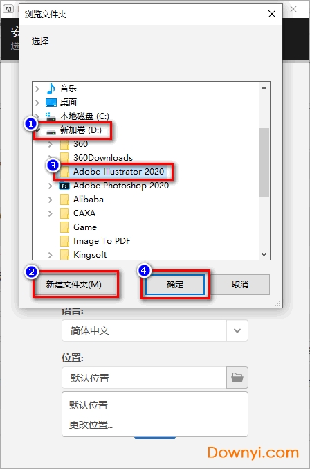 3、按照的如图所示的步骤来调整安装路径: