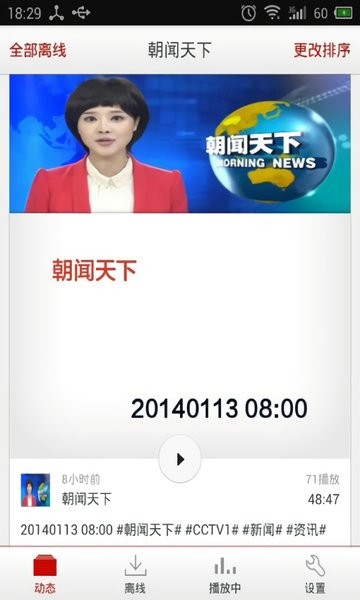 朝闻天下客户端是专门用来观看朝闻天下的手机新闻阅读客户端,为用户提供准确的新闻资讯,和最权威的信息解读,超多音频随时听,精彩内容随时看,让你轻松了解天下事。