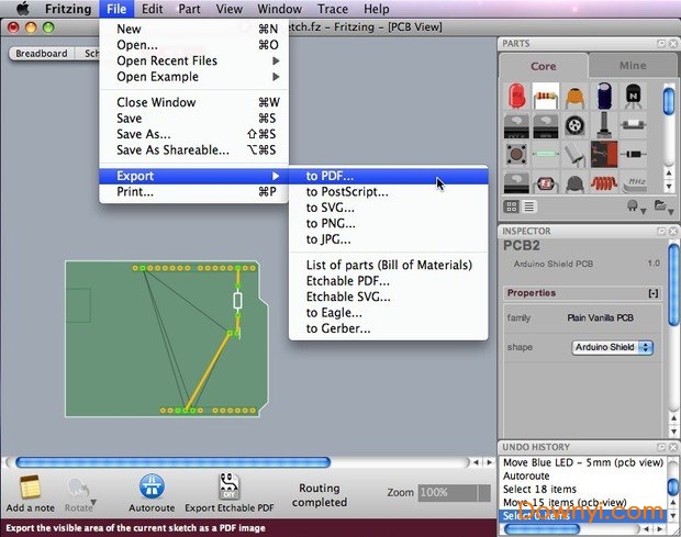 从fritzing菜单栏中,选择file> export>,然后选择所需的格式。