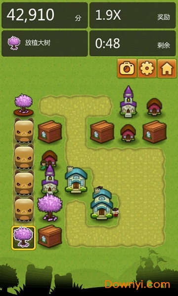 如果能用最简单的玩法使得游戏不断升级不断有新的惊喜,并且能够成功的让玩家为它停留,就十分的出色,正如经久不衰的俄罗斯方块和各种连连看以及祖玛游戏,本作同样具有如此潜质。首先来看一下游戏的画面,尽管打开之后我们面对的就是这块在此后都不会有太多变化的绿色方块草地,游戏中出现的元素都非常简单,但简单并不代表枯燥,深浅不一的绿色植物,从小草到大树,还有开满花的树丛,组合在一起就是一个小小的谜,各式各样的小房子也会逐一出现,如小木屋、教堂等等,而且还不时会有居民走动,跟房子一样大的小熊出现时也非常可爱,还有各式表情表达喜怒哀乐。尽管简约,但整体画面都会让人感觉亲切舒适。