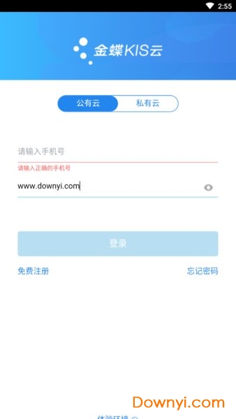 3、支持公有云与私有云两种模式访问金蝶kis账套