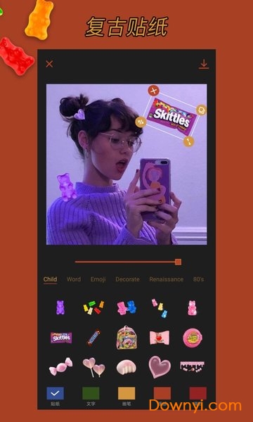 3、这里汇聚了很多复古的贴纸效果,帮助大家添加到图片上,还能让你添加编辑文字哦!