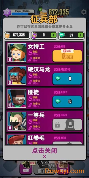2、招募不同能力的士兵并配备强大的武器!