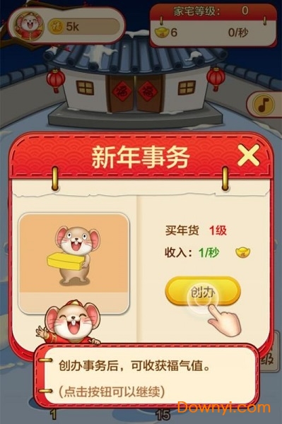 福气之家是一款可以放置挂机赚钱的手游,玩家在游戏内可以体味到浓郁的过年氛围,玩法简单有趣,还可以领取红包,感受独特的中国风。各种任务等你挑战,还可以在这里了解过年趣事与习俗,快来试试吧!