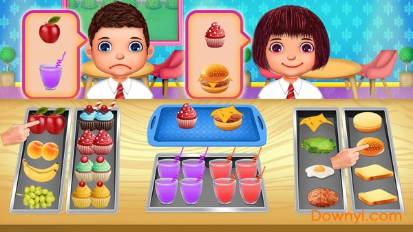 1、卡通式的游戏风格,多种简单却丰富的玩法;从食堂到教室。
