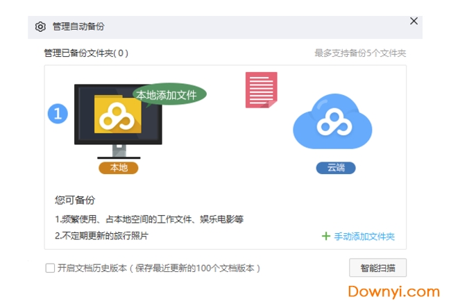 3)有自动备份文件夹功能,可以关联5个文件夹,将文件放在关联文件夹后,文件自动上传到云端,永不丢失。
