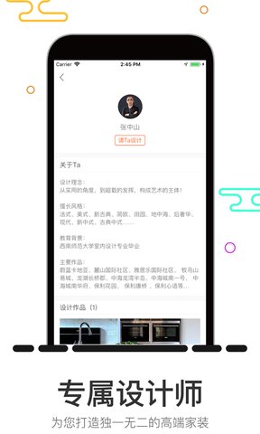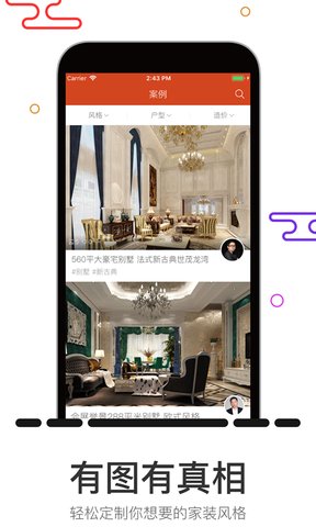 您可以通过app浏览家居美图、装修案例,找到装修灵感,还可以学习到最新潮流时尚的装修及家居搭配技巧,更可以根据个性化需求,家装设计师为自己提供专业的指导和服务!