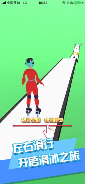 2.简约的游戏画面,经典的游戏玩法,移动方块操控角色进行滑冰动作,体验最精彩天空轮滑