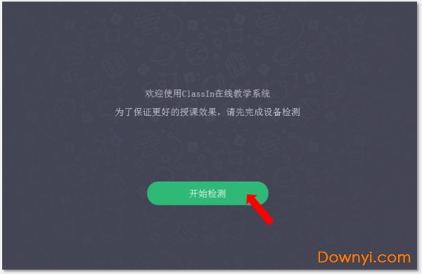 3.对于第一次安装使用classin的用户,在登录教室前,classin会帮助您对您的网络环境、已经音视频设备进行“体检”,以确保您能正常上课。请您点击“开始检测”,按照提示,进行检测。