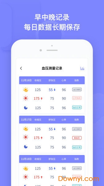 每天记录血压值,及时了解当下的血压情况,保持血压健康。