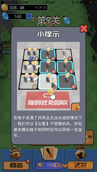 通过合成兵种卡牌,从个体士兵逐渐壮大士兵队伍,升级成一个强大的兵营。