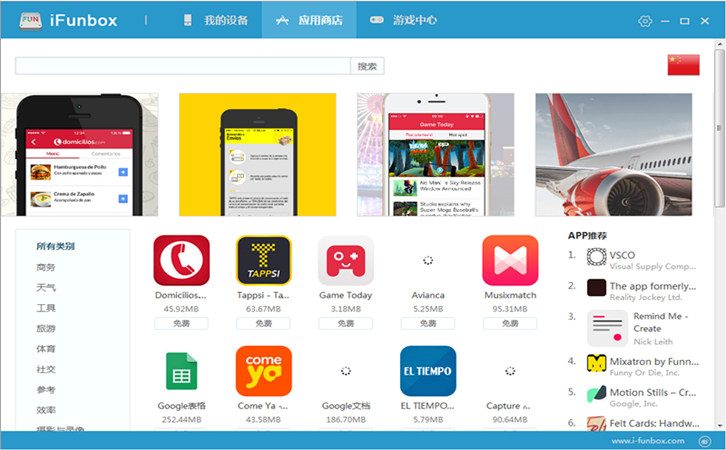 iFunBox,是iPhone以及苹果其他产品的通用文件管理软件,使苹果的各类便携式设备得以共享文件和程序,为您轻松上传电影、音乐、电子书、桌面、照片以及各类应用软件,另外还有个极富特色的用途,即把你的iPhone变为一个U盘,可携带任何数据。