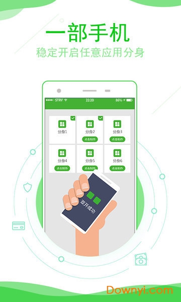 可免费双开微信、qq、支付宝、淘宝、饿了么、派派、陌陌、唱吧、王者荣耀等几乎所有应用,两个账号同时在线,无需切换。
