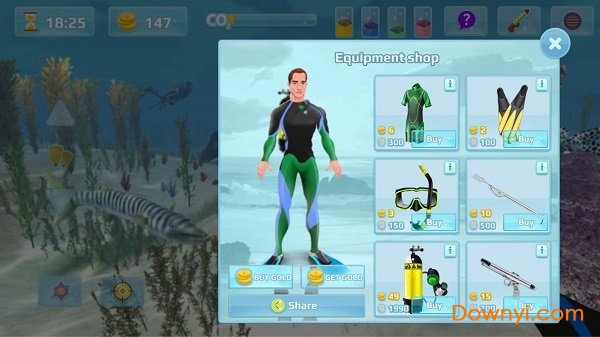 趣味的海底冒险游戏,玩家可以在商店解锁购买各种不同的潜水装备,可以使用各种武器来狩猎海底生物,潜水、寻找猎物、瞄准射杀