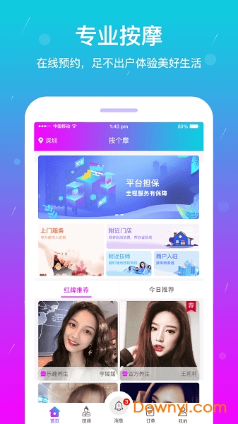 按个摩软件让你在家里就能预约按摩服务,直接线上就能下单,然后有专业的技师来给你服务,平台是非常正规的,而且还有很多优惠活动,感兴趣的话就来本站下载吧。