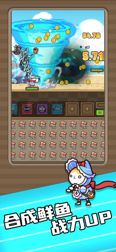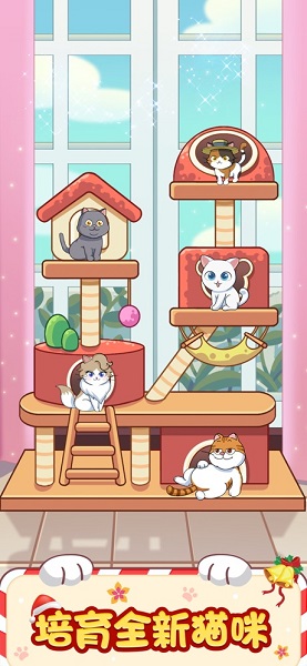 2、趣味合成:轻点合成解锁猫咪,放置养成猫咪赚金币。