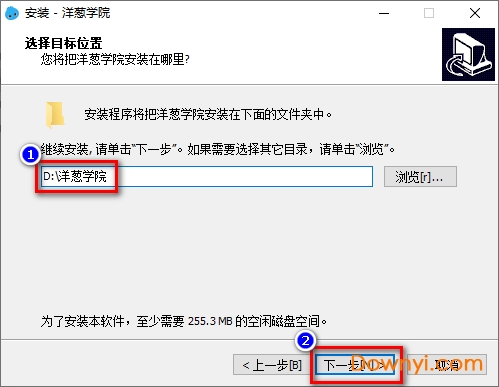 2、可以直接在①中修改安装路径。修改完成之后点击“下一步”: