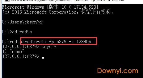 2.打开另一个cmd窗口,客户端调用:redis-cli.exe -h 127.0.0.1 -p 6379