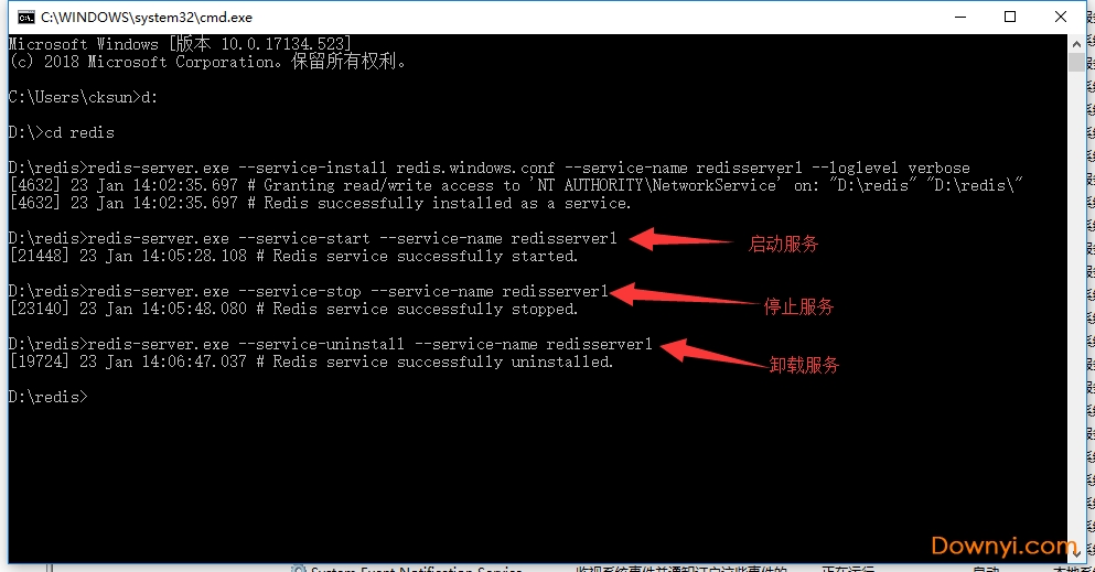 启动服务:redis-server.exe --service-start --service-name redisserver1