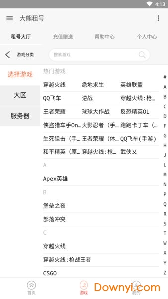 大熊租号平台cf租号是一款拥有海量账号的手机租号app,cf,lol,王者荣耀……大神级账号随便租,一元即可获得!全新的租号机制上线,安全有保障,轻松玩游戏!