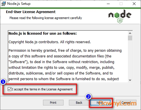 3、勾选①,同意条款之后点击“next”