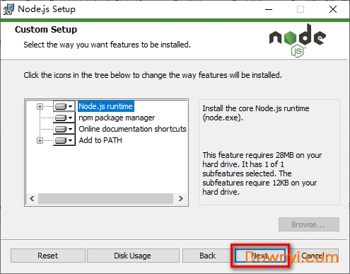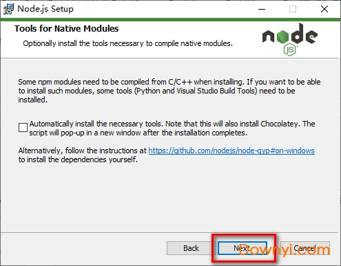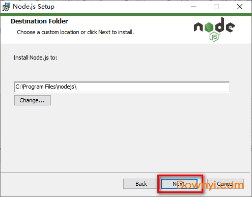 4、就使用默认的安装路径,这样默认就是全局安装,这样以后调用node就方便很多,点击“next”