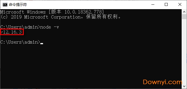 9、通过使用win键,输入cmd,将“命令提示符”打开,输入“node -v”,出现如下如图中的版本显示说明就安装成功了!