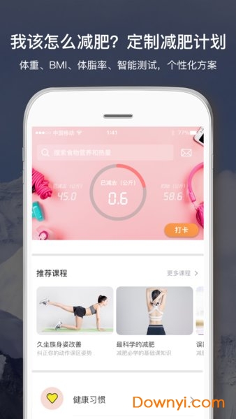 根据用户的自身体质与运动量,智能推荐膳食平衡搭配,科学减肥;