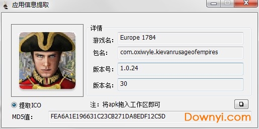 apk图标提取pc版提取速度快,方便实用,并且还会显示apk文件的详细信息,包括游戏名、版本号、包名、版本名以及md5值等信息。